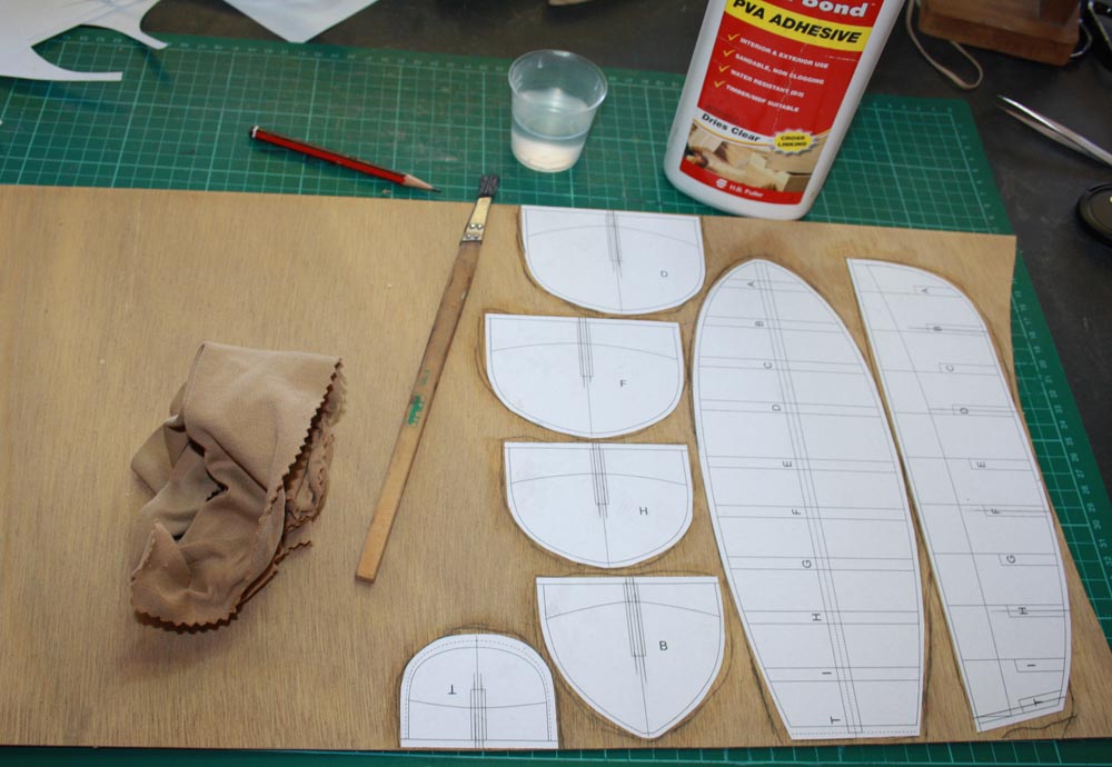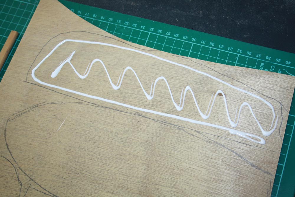 I am using PVA glue to stick the templates to the plywood. You could use whatever type of glue you choose but the idea is not to let the paper get soaked as it will stretch and go out of shape.