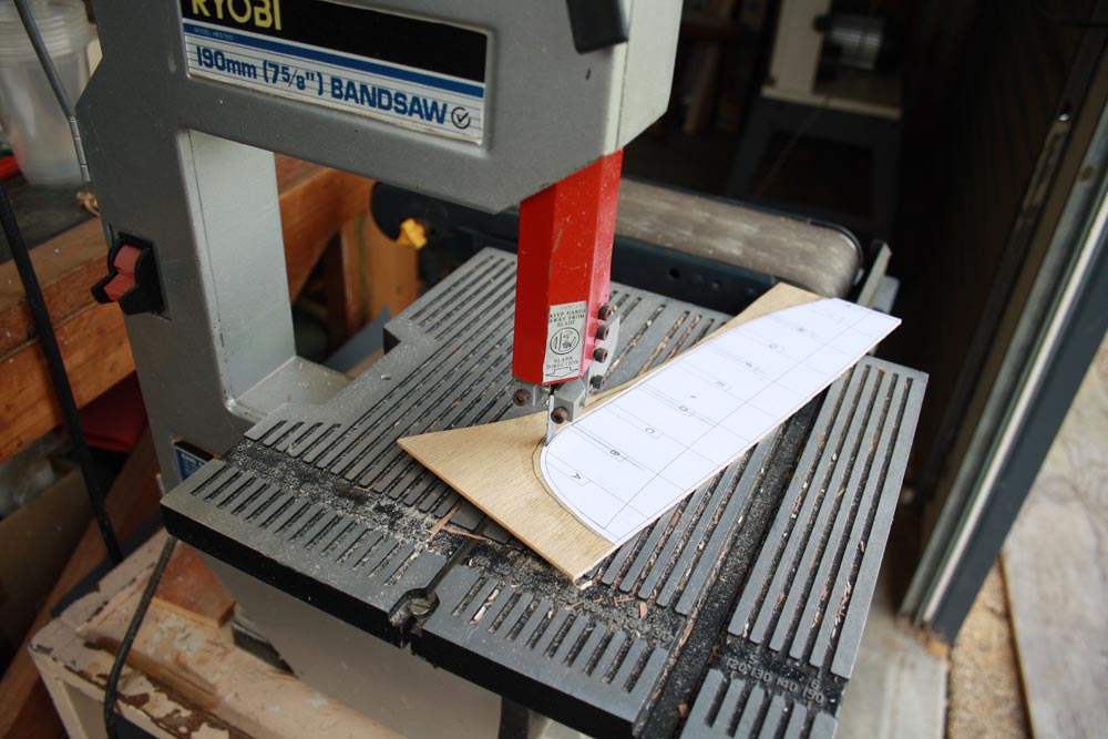 If you only have access to hand tools you can use a coping saw or a fret saw to cut out the frames, keel and base.