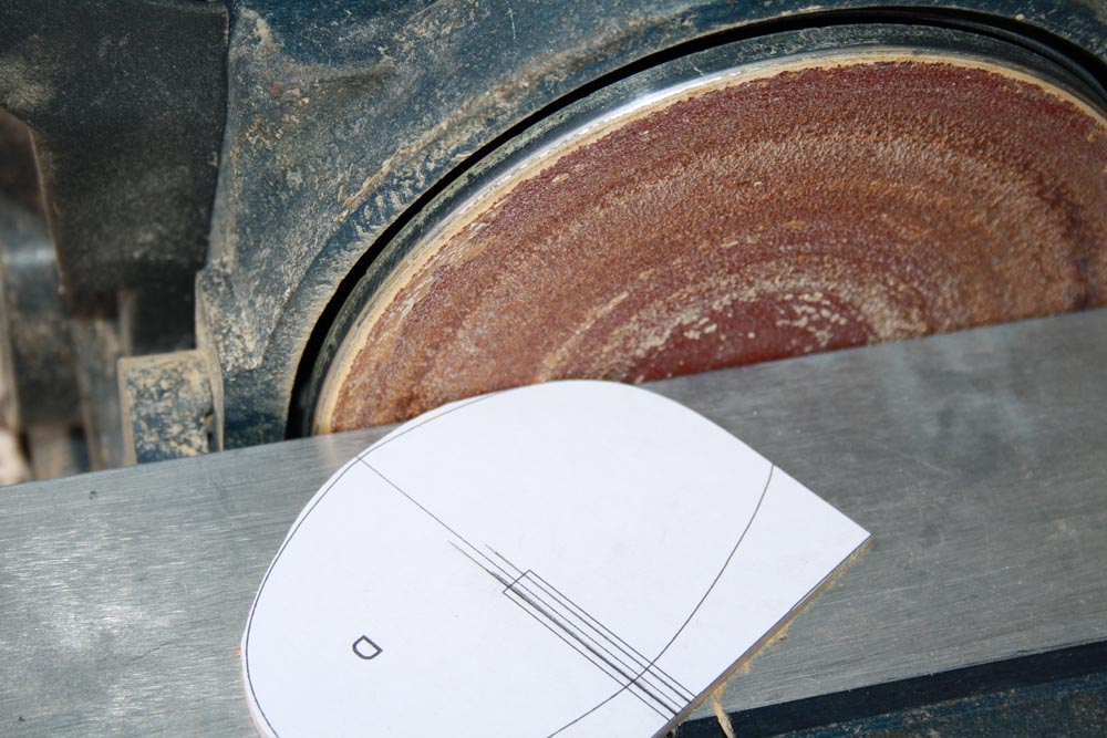 I prefer to cut parts out a little oversize and then use a disc sander to get to the final finished size. I find that I have a bit more control this way.