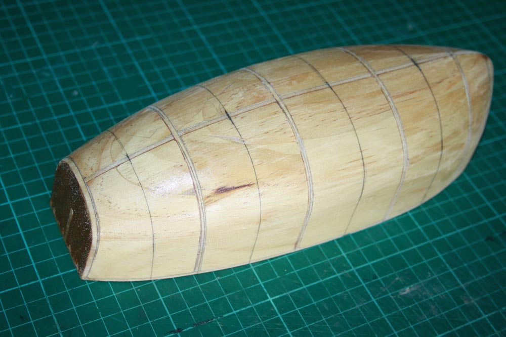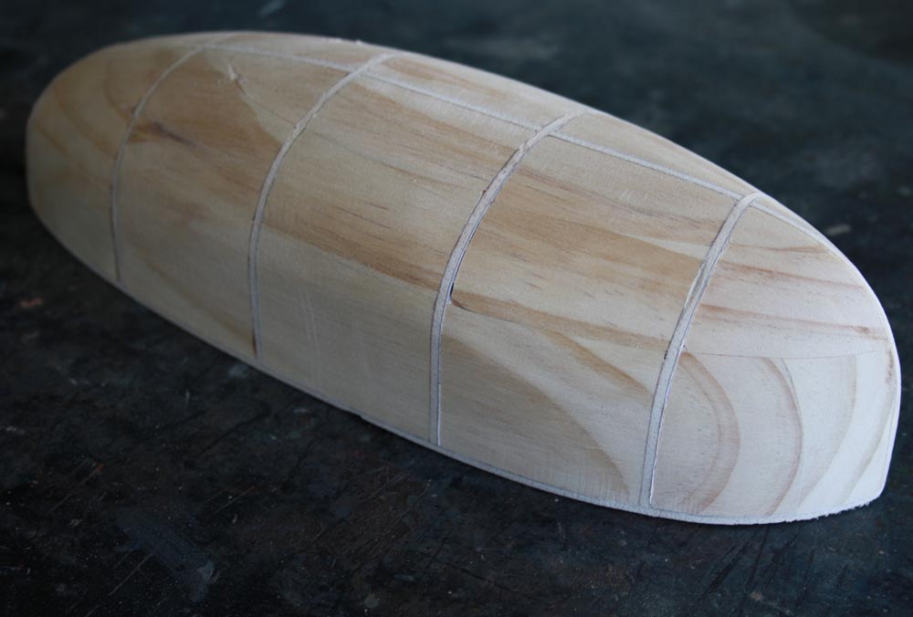 Lines were drawn on the plug where the internal ribs will sit and the plug was given a couple of coats of clear varnish to seal it.