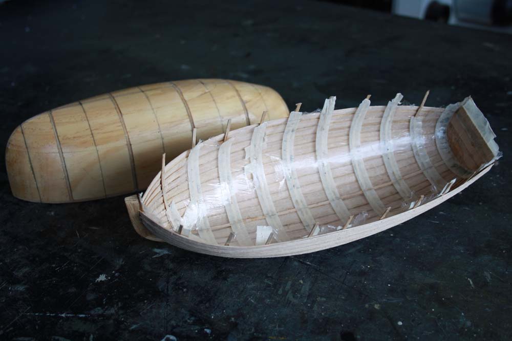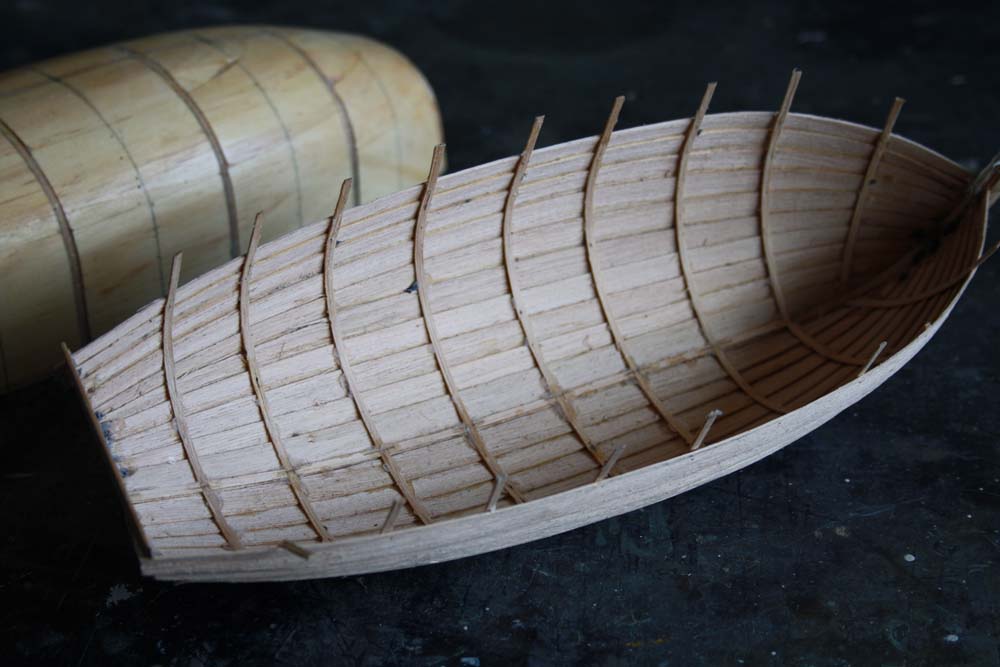 Additional ribs and the gunnel timbers were fitted.