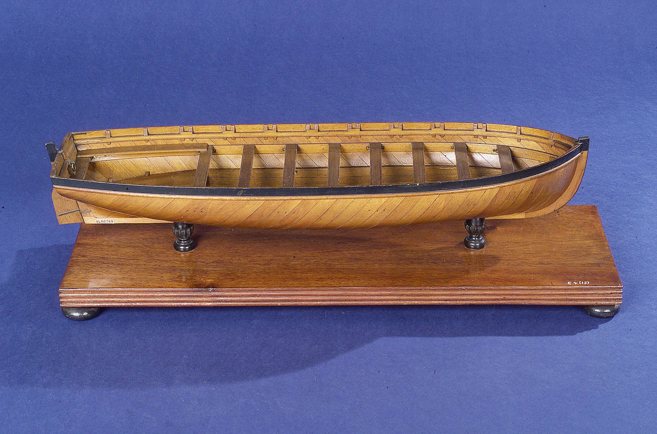 These two photos show one of the diagonal planked models from the Greenwich Maritime Museum collection. This model is one in a series of ten open boat models dated 1838, most of which are diagonal planked.